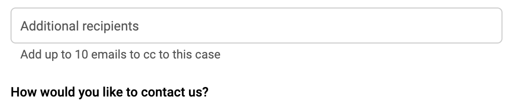 If you want other users to see or participate in an open case, add them to the email thread by using the Additional recipients field in the Cloud console on the Create a Support Case page.