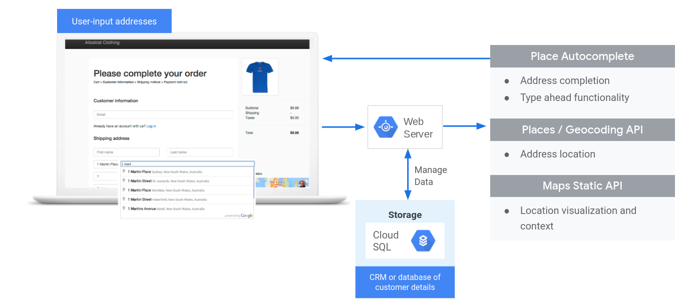 By incorporating the Place Autocomplete in your online shopping cart, you can: