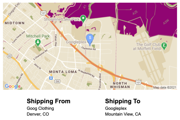 After address entry, provide the user visual confirmation of the delivery or pickup location with a simple static map. This will offer the customer additional assurance that the address is correct, and it will reduce delivery/pickup failures. The static map can be shown on the page where they enter the address or even sent within the confirmation email when they have completed the transaction.