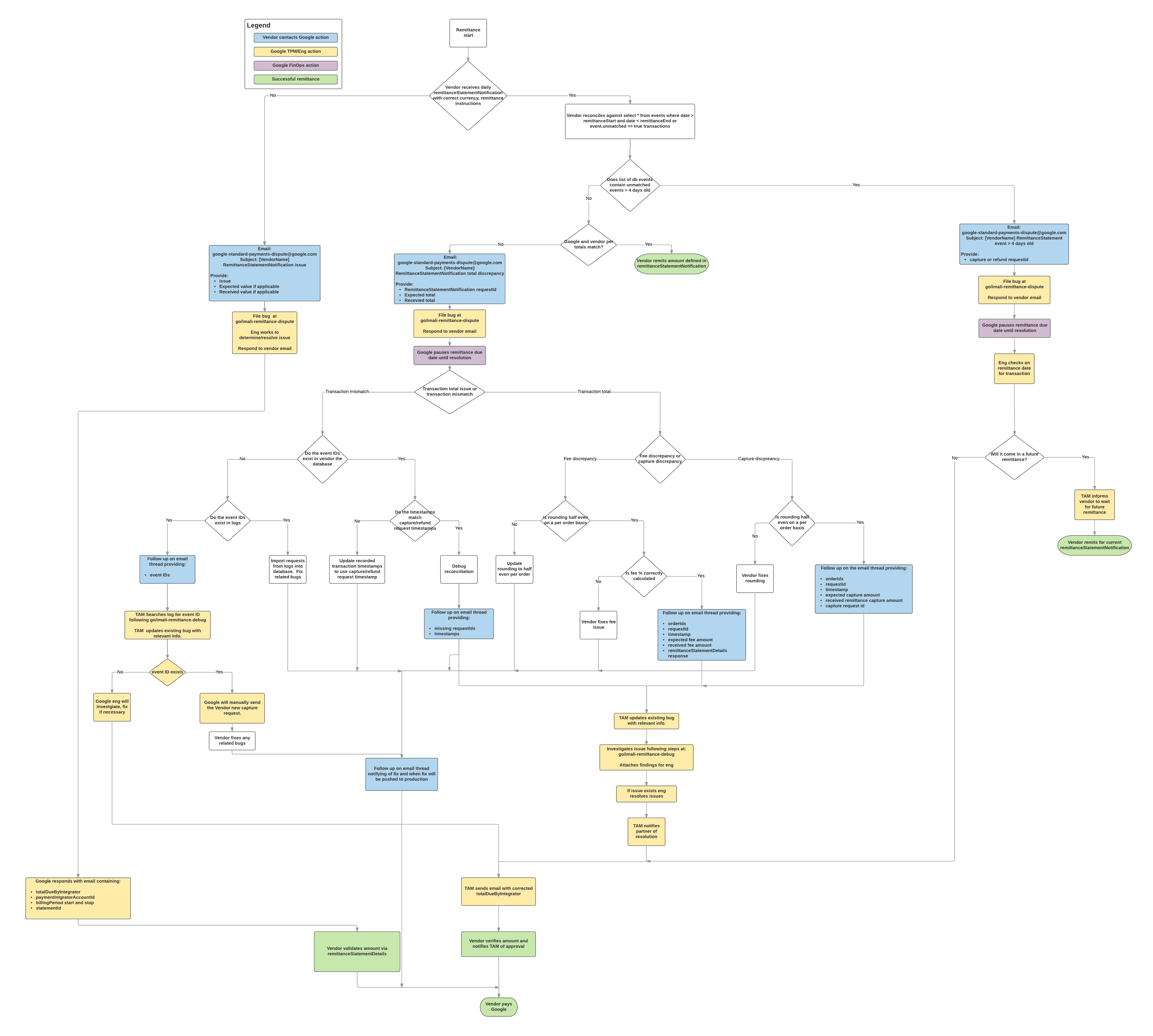 In the case where the remittance statement doesn't match the integrator's expected value, the integrator should follow the diagram below to determine the pieces of information to provide to Google and resolution flow.