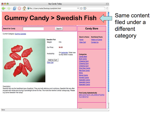 However, users (and Googlebot) can access Swedish fish through multiple (not as simple) URLs. Even