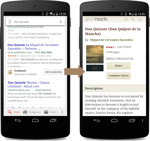 In October, we announced guidelines for App Indexing for deep linking directly from Google Search results to your Android app. Thanks to all of you that have expressed interest. We've just enabled 20+ additional applications that users will soon see app deep links for in Search Results, and starting today we're making app deep links to English content available globally.