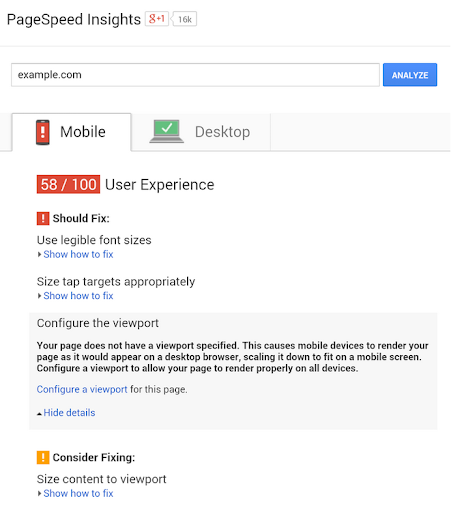 To help developers and webmasters make their pages mobile-friendly, we recently updated PageSpeed Insights with additional recommendations on mobile usability.