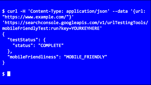 [[["Easy to understand","easyToUnderstand","thumb-up"],["Solved my problem","solvedMyProblem","thumb-up"],["Other","otherUp","thumb-up"]],[["Missing the information I need","missingTheInformationINeed","thumb-down"],["Too complicated / too many steps","tooComplicatedTooManySteps","thumb-down"],["Out of date","outOfDate","thumb-down"],["Samples / code issue","samplesCodeIssue","thumb-down"],["Other","otherDown","thumb-down"]],[],[],["The Mobile-Friendly Test was announced as available via API, enabling automated URL testing for mobile-friendliness. The API allowed users to monitor web pages and identify issues like blocked URLs, mirroring the manual test's functionality. Documentation and code samples were provided for ease of use. This aimed to improve detection and resolution of mobile-friendliness problems, however, as of December 2023 the API has been retired.\n"]]