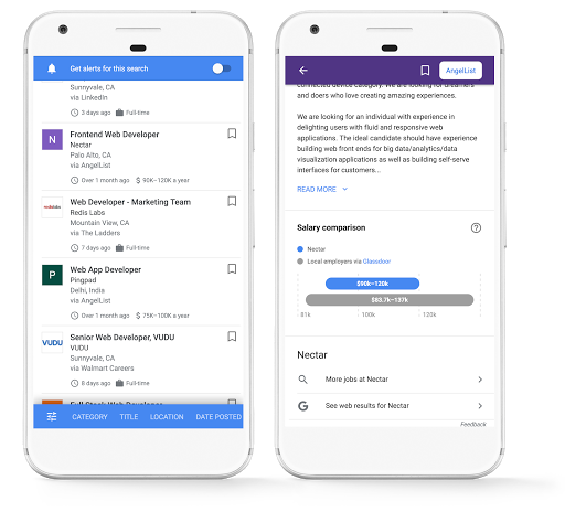 In June, we announced a new experience that put the convenience of Search into the hands of job seekers. Today, we are taking the next step in improving the job search experience on Google by adding a feature that shows estimated salary information from the web alongside job postings, as well as adding new UI features for users.