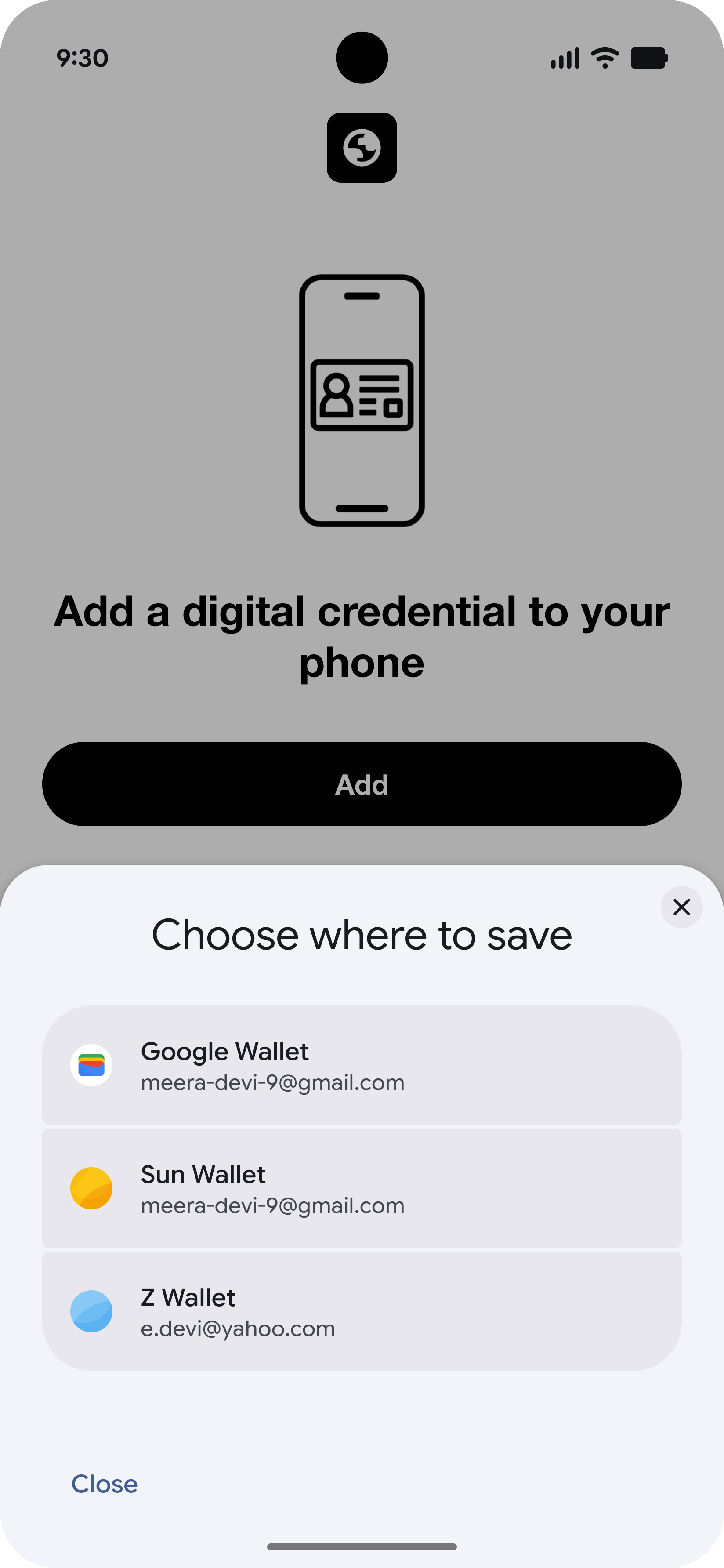 • Users initiate the DC provisioning process by adding a DC to the Google Wallet app on their Android device and selecting their issuing state.
