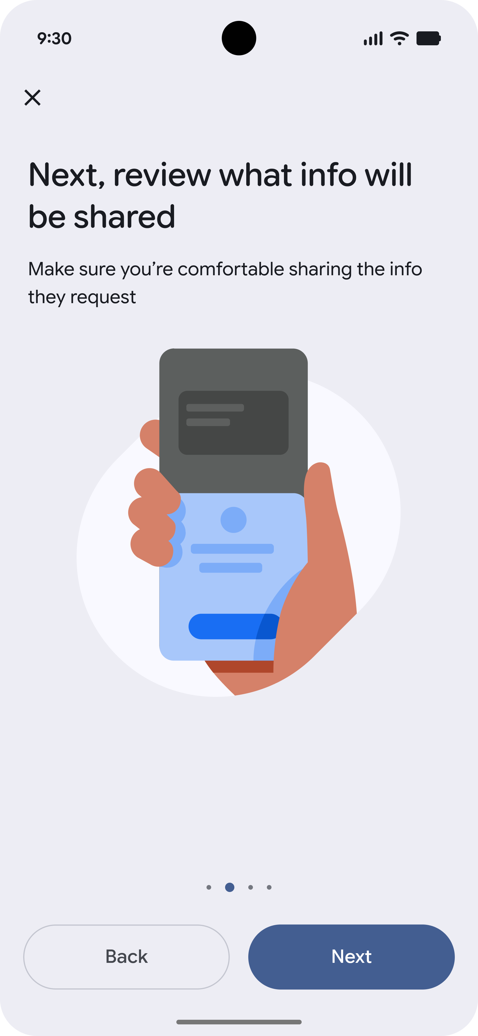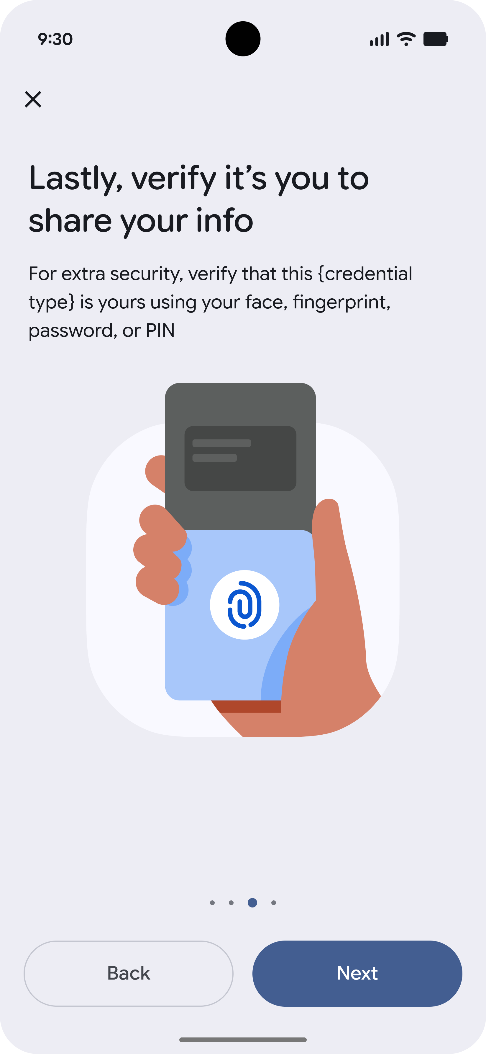 • Identity verification requires the user to share photos of their identity document and a liveness video with Google and the Issuer after consenting.