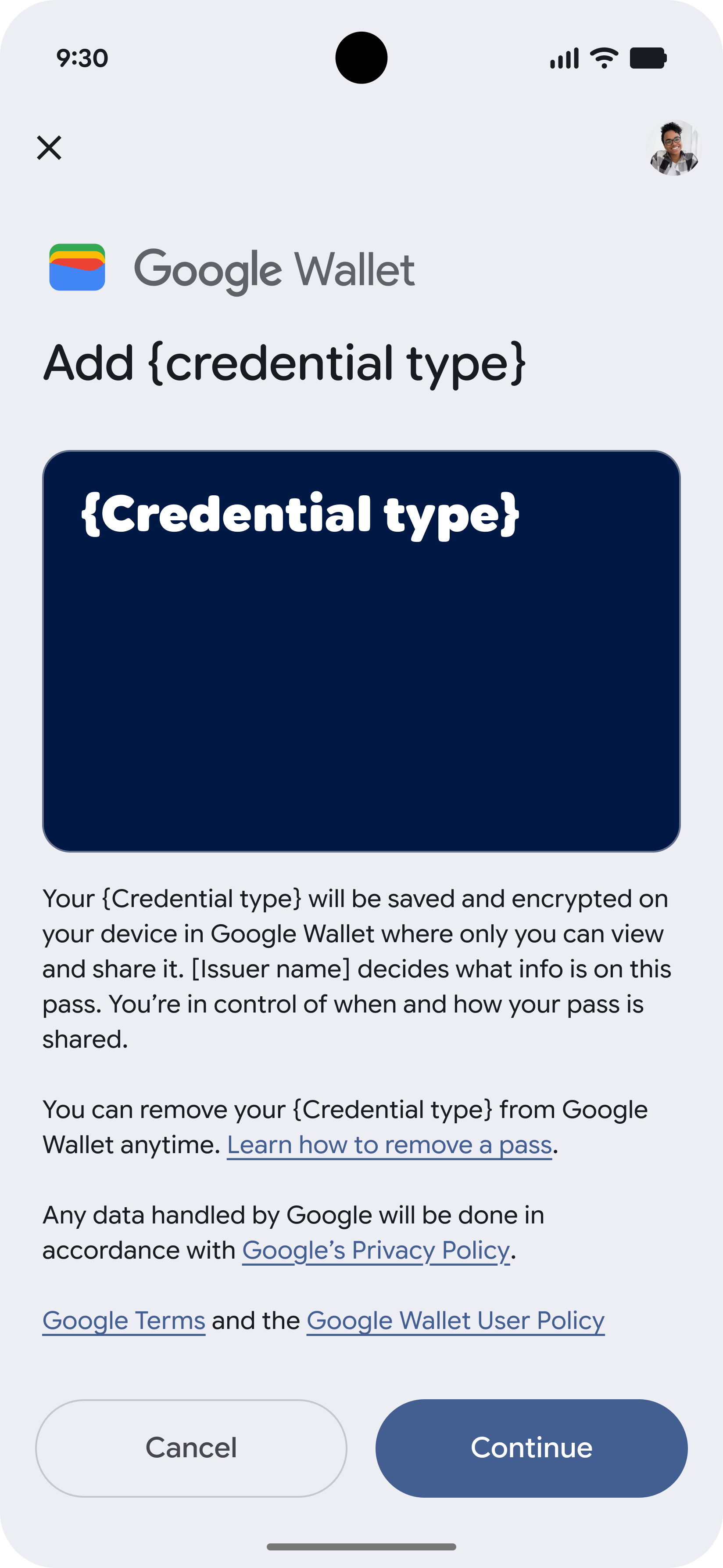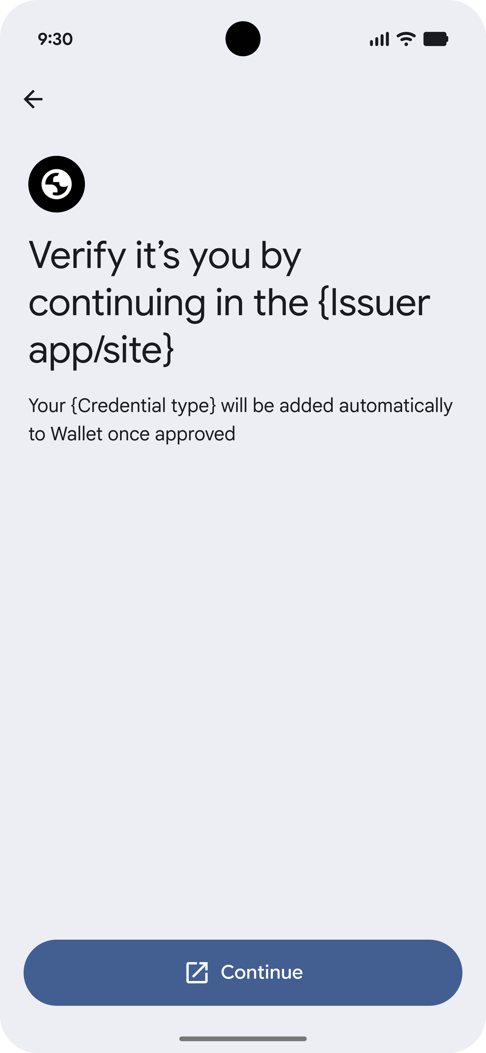 The user initiates the flow from Google Wallet and selects their Issuer.