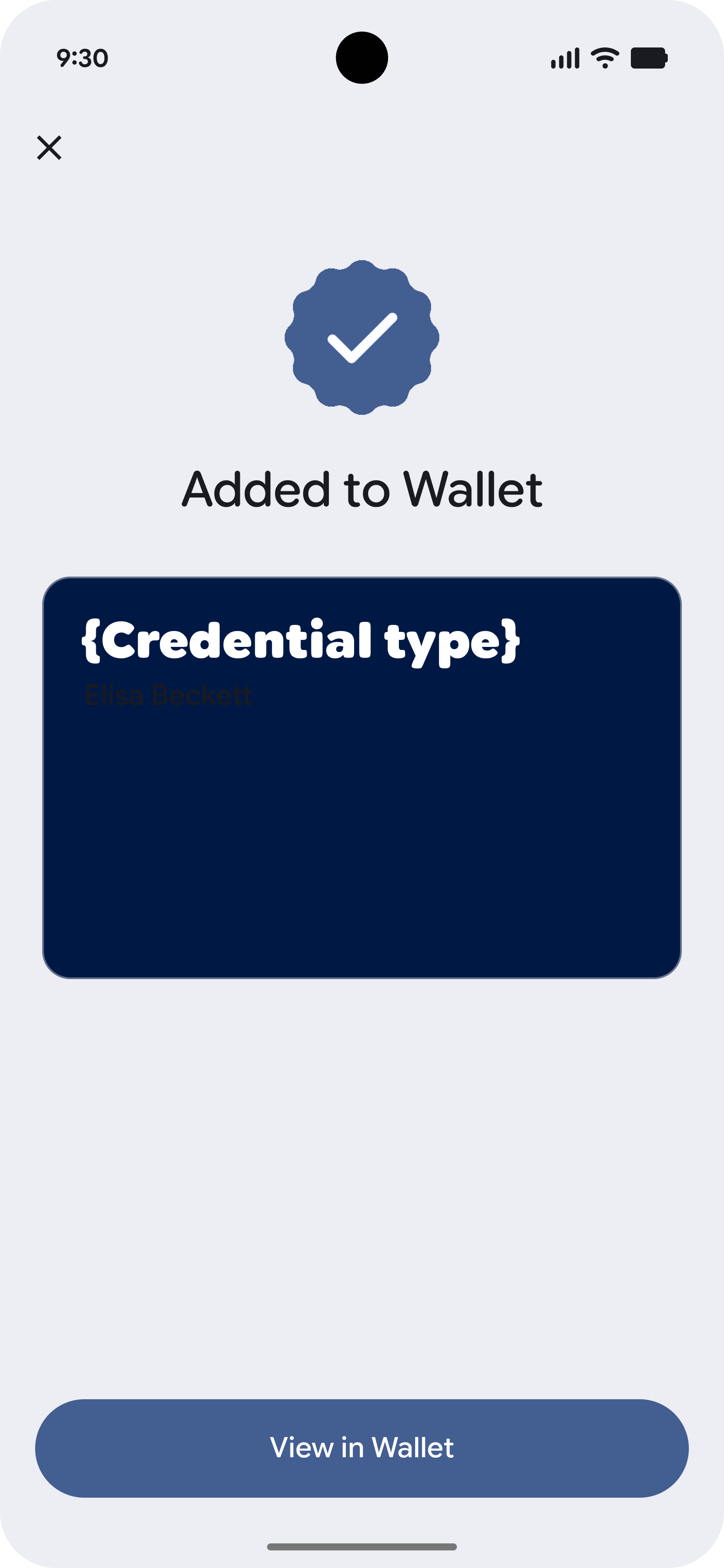 The user starts in the Issuer's app and chooses to add their VDC to Google Wallet.