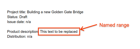 For example, suppose you create a named range where a "product description" string must appear in a document: